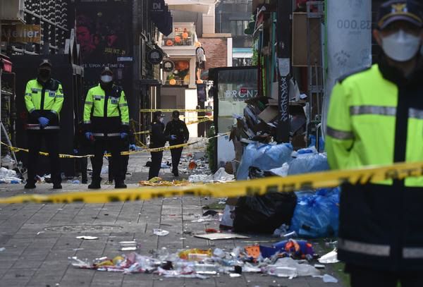 할로윈을 앞두고 이태원 일대에 대형 압사 참사가 발생한 30일 서울 용산구 이태원 일대에서 경찰이 현장을 통제하고 분주히 움직이고 있다. [김호영 기자] |