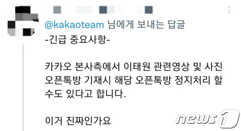 '카톡 오픈채팅서 이태원 사진 보내면 정지' 사실일까