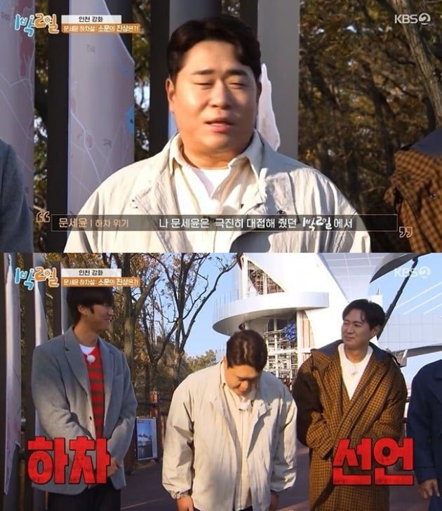 이에 김종민이 "하차하는 거냐"고 묻자 문세윤은 "나 문세윤은 극진히 대접해 줬던 '1박 2일' 프로그램에서 하차하였습니다"라며 고개를 숙였다.