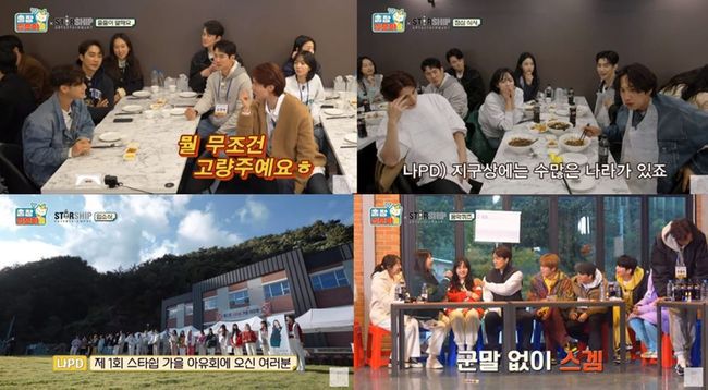 출발 전 스타쉽 소속 스타들이 한 자리에 차례로 모였다. 몬스타엑스, 우주소녀, 크래비티, 아이브를 비롯 배우 1팀 송승헌, 김범, 류혜영, 신승호, 2팀 이동욱, 이광수, 채수빈, 손우현, 솔로 팀 케이윌, 정세운으로 팀이 꾸려졌다.