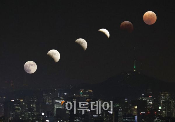 이날 한국천문연구원에 따르면 오후 6시 8분 48초 동쪽 하늘에서 달이 지구의 본그림자에 부분적으로 가려지는 ‘부분식’이 시작됐다. 이어 달은 지구 그림자에 점점 더 많은 부분이 가려지다가 1시간여 후인 오후 7시 16분 12초 전체가 가려지는 ‘개기식’으로 변햇다. 개기식은 오후 8시 41분 54초까지 약 1시간 25분 간 유지됐다.