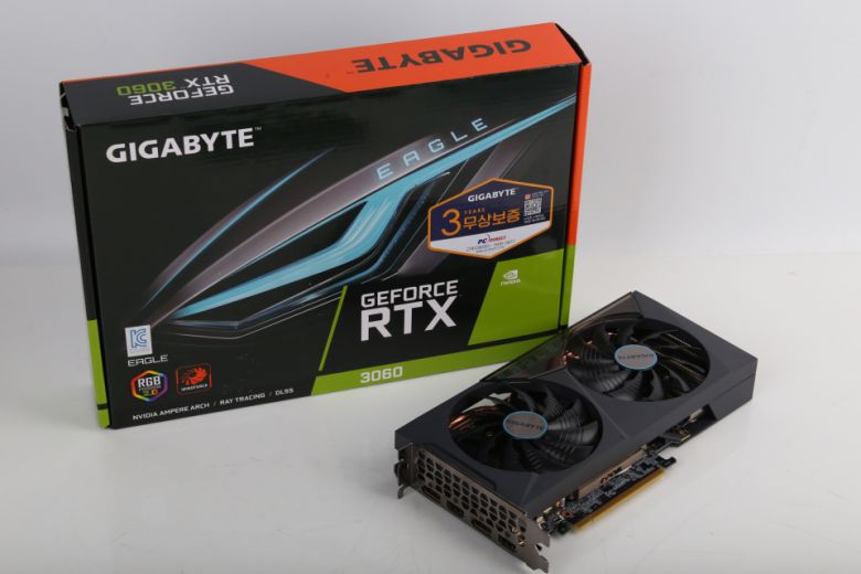 'GIGABYTE 지포스 RTX 3060 EAGLE OC V2 D6 12GB 피씨디렉트'는 플레이스테이션 5나 엑스박스 시리즈 X급의 성능을 갖춘 그래픽카드다. 오버 클럭이 적용된 그래픽카드이기 때문에 레퍼런스 RTX 3060보다 더 높은 클럭으로 작동한다.