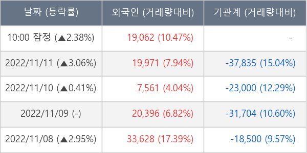 [표] 외국인ㆍ기관 순매매량 (단위 주)