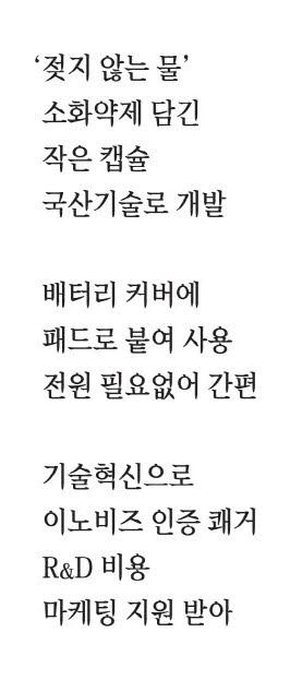 마이크로캡슐 소화기는 화재가 났을 때 소화약제가 담긴 마이크로캡슐이 특정 온도에 도달하면 스스로 터져 소화약제를 기화시키는 방식으로 불을 제압한다. 소화약제는 화학 글로벌기업 3M이 생산하는 노벡1230이다. 노벡1230은 일명 '젖지 않는 물'로 불리는 친환경 소화약제로, 소화 후 잔유물이 남지 않아 2차 피해가 없다는 게 장점이다. 마이크로캡슐 안에 노벡1230을 담는 것이 핵심 기술이고, 지에프아이가 세계에서 유일하게 개발했다. 한국과학기술연구원을 통해 노벡1230 캡슐화에 대한 검증도 받았다.