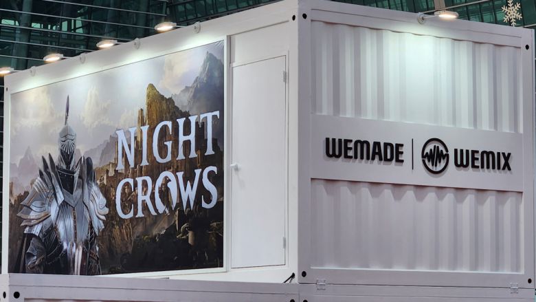 부산 벡스코 야외에 마련된 부스에 위메이드의 신작 '나이트 크로우즈' 이미지와 회사 로고가 붙어있다. |