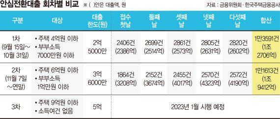 신청이 저조하자 당정은 내년 1월부터 추진하는 일반형 안심전환대출의 주택 가격을 9억원까지 확대하는 방안을 논의 중이다. 소득 요건도 없애고 대출 한도도 5억원까지 늘릴 계획이다.