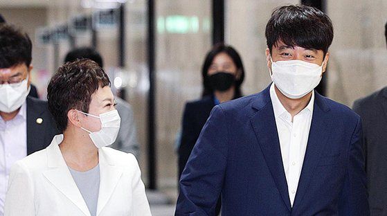 국민의힘 이준석 전 대표가 지난해 9월 2일 서울 여의도 국회에서 열린 최고위원회의에 정미경 전 최고위원과 대화하며 입장하고 있다. 연합뉴스 |