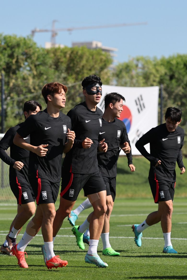 선수들은 가볍게 몸을 풀었다. 손흥민(토트넘 홋스퍼)을 비롯해 예비 선수 오현규(수원 삼성)까지 26명이 모두 런닝을 한 뒤 세부 훈련에 나섰다. 공식 훈련이라 선수들 연습복에는 후원사인 KT가 사라졌다. FIFA의 엄격한 운영으로 대한축구협회도 참가팀 자격으로 훈련장에서 훈련한다.