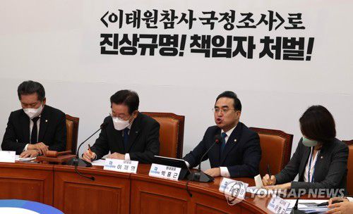 (서울=연합뉴스) 백승렬 기자 = 더불어민주당 박홍근 원내대표가 25일 국회에서 열린 최고위원회의에서 발언하고 있다. 2022.11.25