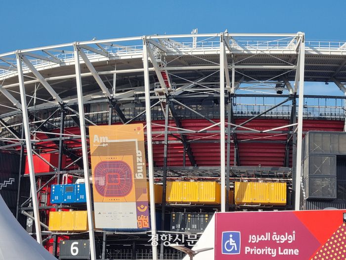 이 경기장에는 냉각 시스템이 없다. 애초에 해체를 염두에 두고 지은 경기장이다 보니 냉각 시스템을 만들지 않았다. 사막 도시에 건설된 경기장에 에어컨이 없다는 것은 상상하기도 힘들다. 그런데 경기장은 예상과 달리 너무 시원해 놀라움을 줬다. 친환경 경기장 답게 자연 바람을 이용해 경기장 온도를 쾌적하게 유지한다. 바닷가 인근에 위치한 경기장에 컨테이너 사이사이 공간으로 자연스레 해풍이 순환할 수 있도록 설계된 듯했다. 이날 경기가 열린 시간은 현지시간으로 오후 7시였는데, 오히려 쌀쌀해 자주 팔짱을 끼며 체온을 끌어올려야 했다.