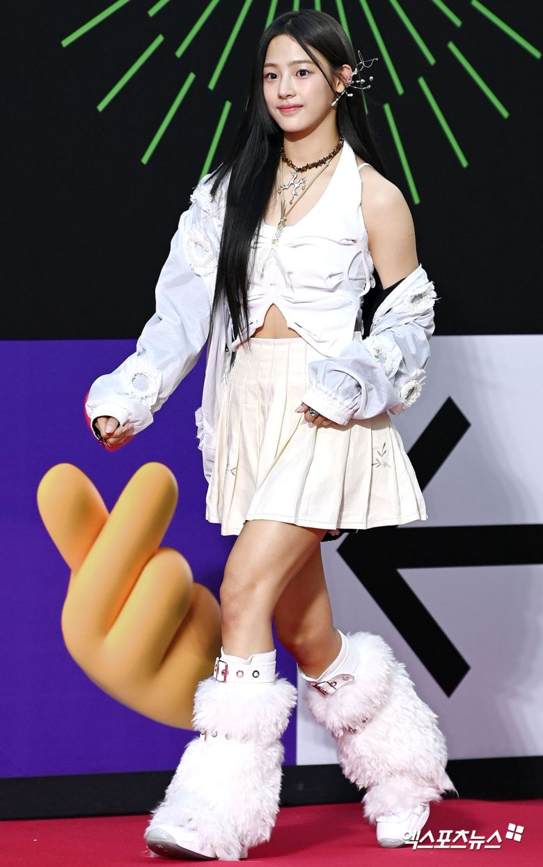 이날 ‘멜론뮤직어워드 2022(MMA2022)’ 레드카펫에 참석한 뉴진스 민지가 포즈를 취하고 있다.