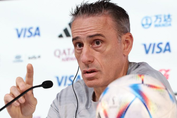 2022 카타르 월드컵 조별리그 2차전 가나와 경기를 하루 앞둔 27일(현지시간) 카타르 알라이얀의 카타르 국립 컨벤션센터(QNCC)에 마련된 미디어센터(MMC)에서 파울루 벤투 감독이 공식 기자회견을 하고 있다. 사진=연합뉴스 |