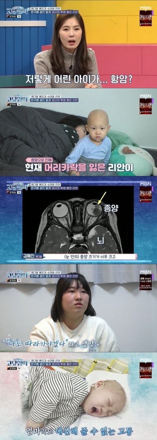 현재 리안이는 항암 치료를 받고 있었고, 김예진은 “위치가 안 좋아서 전이가 뇌나 척추나 다른 뼈로 됐으면 사망률이 높아지고 치료가 어려울 거라고. 생과 사를 오가는 병이 될 거라고. 저 작고 어린 나이의 아이가 생을 마감하게 되면 저도 따라가야겠다는 생각밖에 안 들었다”라며 눈시울을 붉혔다.