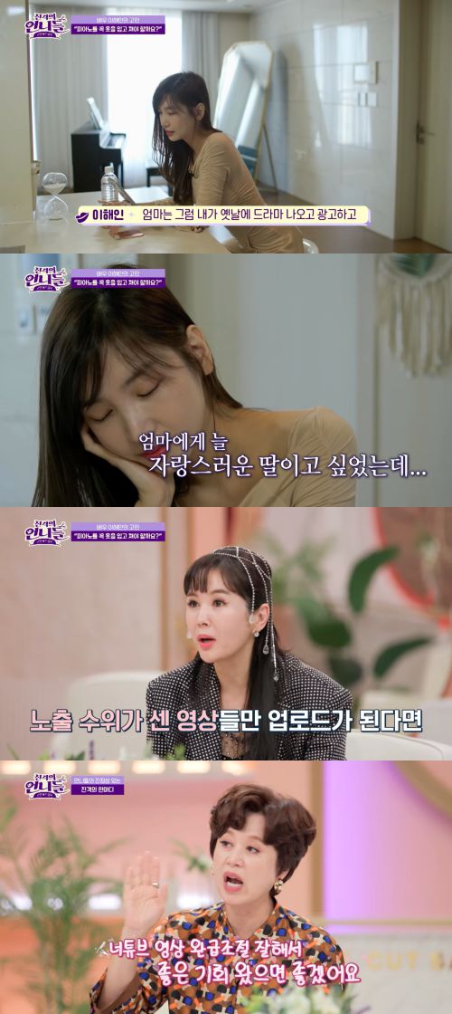 이에 박미선은 노출 수위가 높은 작품에서 제의가 들어온다면 어떨 것 같냐고 물었고, 이해인은 “저는 그것도 좋아요. 이유가 확실하면 괜찮다”고 말했다.