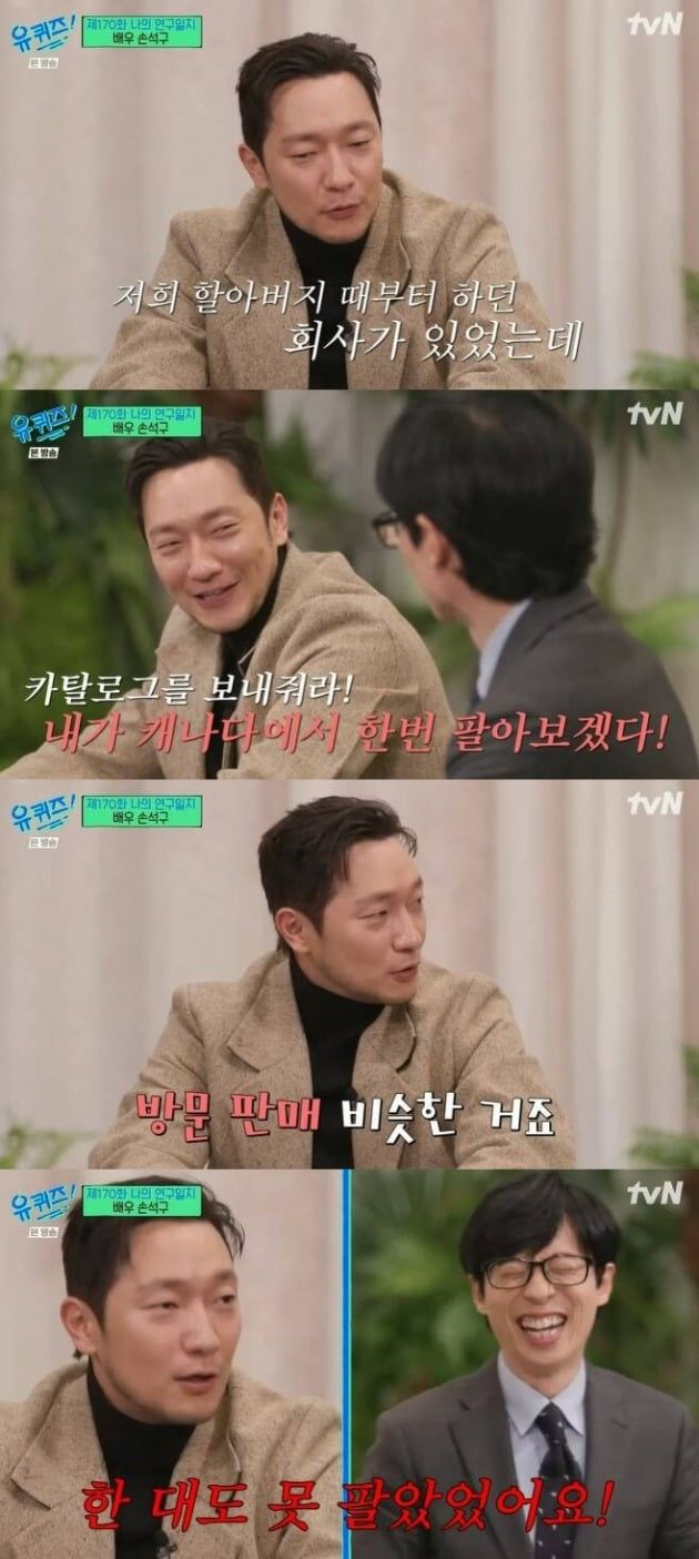 손석구는 당시 직장생활도 했다고. 손석구는 “캐나다에 살면서 할아버지가 운영하던 화사가 있었는데 영업사원으로 방문판매를 하게 됐다”고 밝히면서도 “사실 한 대도 못 팔았다”고 너스레를 떨었다.