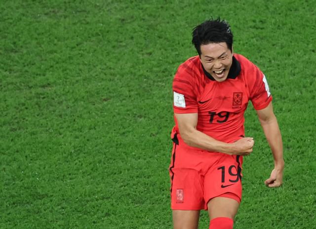 한국 축구 대표팀 김영권이 2일(현지 시간) 카타르 알라얀의 에듀케이션 시티 스타디움에서 열린 2022 카타르 월드컵 조별리그 H조 3차전 포르투갈과의 경기에서 전반 27분 동점골을 기록한 뒤 환호하고 있다. 알라얀=연합뉴스 |