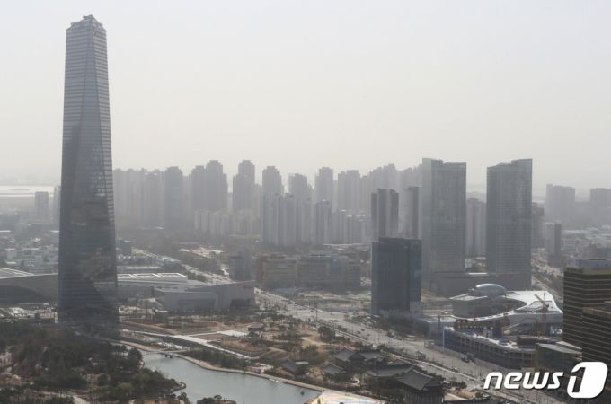 (인천=뉴스1) 정진욱 기자 = 전국이 중국발 황사 영향권에 들어가고 특히 수도권 등에 짙은 황사가 들이닥칠 전망이다. 사진은 16일 오전 인천시 연수구 송도IBS타워에서 바라본 인천 송도의 모습.2021.3.16/뉴스1 |