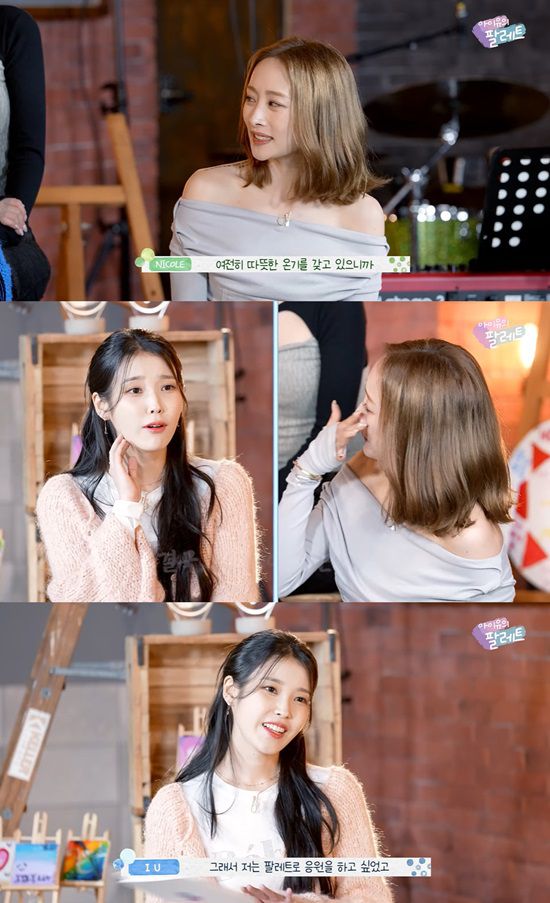 니콜은 "(아이유가) 어렸을 때도 성숙하고 친절함, 다정함이 묻어있었는데 오랜만에 만나도 그대로 있어서 좋았다. 여전히 온기 갖고 있으니까 내 마음도 편하게 해주고 팀에도 응원 많이 해줘서 고마웠다"고 밝혔다.