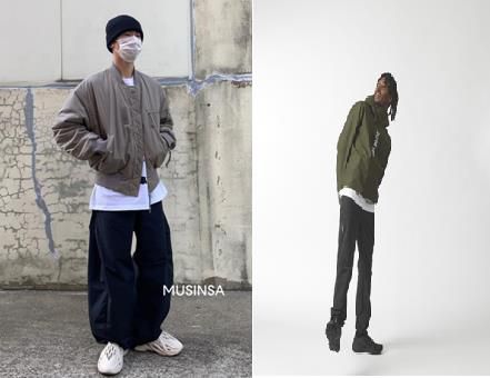 고프코어룩[사진 왼쪽부터 그레일즈 멀티 지퍼 봄버 재킷, 살로몬 스포츠 스타일. 무신사 제공. 재판매 및 DB 금지]