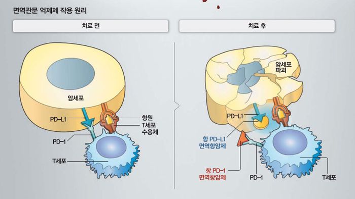문제는 똑똑한 암세포가 면역관문 단백질을 활용해 자신을 정상세포로 위장할 때 발생한다. 평상시에는 인체에서 주기적으로 생산되는 암세포를 T세포와 같은 면역세포가 죽이기 때문에 암으로 발전하지 못한다. 그러나 면역세포가 암세포를 인식하지 못하면서 상황은 달라진다. 진화된 암세포는 면역관문 단백질을 활용해 T세포를 속여 공격을 막는다. PD-L1은 발전된 암세포 표면에도 존재하는데 암세포의 PD-L1과 T세포의 PD-1이 결합해 면역세포가 암세포를 공격하지 못하도록 신호를 보내는 것이다. 이들 단백질은 결국 암세포가 정체를 숨기는 데 도움을 주는 역할하는 것이다.