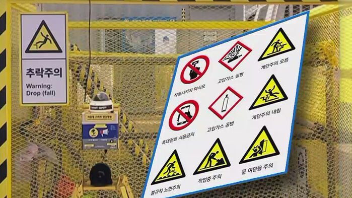 자칫 구를 수도 있지만, 흔히 볼 수 있던 초록색 망이 쳐 있기만 하던 지하 현장 출입구가 위험을 '경고'하는 뜻을 담은 노란색 망으로 교체됐습니다.