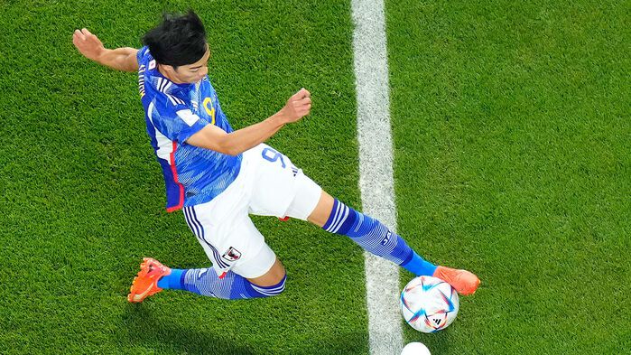▲ 라인 밖으로 나간 공을 살려내는 일본 국가대표 미토마