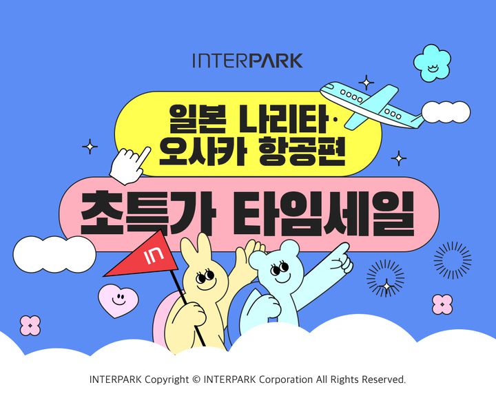 인터파크는 이날 오전 11시부터 나리타와 오사카행 제주항공 왕복항공편을 선착순 60% 할인 판매한다.