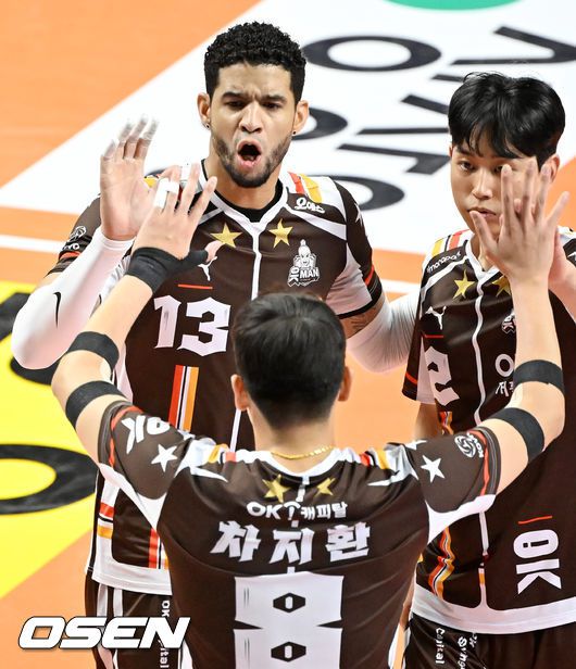 [OSEN=장충, 민경훈 기자] 6일 오후 서울 장충체육관에서 ‘도드람 2022-2023 V리그’ 남자부 우리카드와 OK금융그룹의 경기가 열렸다.