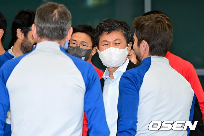 [OSEN=인천공항, 최규한 기자] ‘2022 카타르 월드컵’에서 12년 만에 16강 진출 쾌거를 달성한 대한민국 축구대표팀이 7일 오후 인천공항읕 통해 귀국했다. 정몽규 대한축구협회장과 벤투 감독을 비롯한 코칭스태프가 기념촬영을 마친 뒤 대화를 나누고 있다. 2022.12.07 / dreamer@osen.co.kr 이 기사의 카테고리는 언론사의 분류를 따릅니다.0공유하기