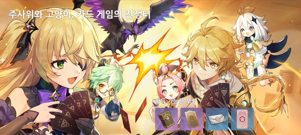 카드 게임의 경험치를 쌓아 레벨을 올리면 더 많은 대결 상대와 NPC를 개방할 수 있다. 도전을 완료하면 럭키 코인, 카드 등의 보상을 획득 가능하다. 럭키 코인은 상점에서 카드로 교환하거나 일부 카드의 '환영 커버'를 해방하는데 사용된다. '환영 커버'를 해방한 캐릭터 카드가 원소폭발 스킬을 사용하면 애니메이션이 재생되기도 한다.