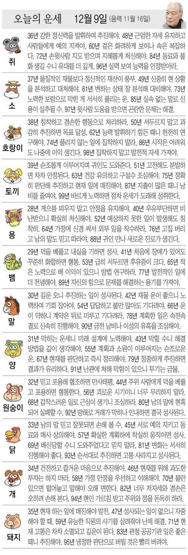 [오늘의 운세/12월 9일]