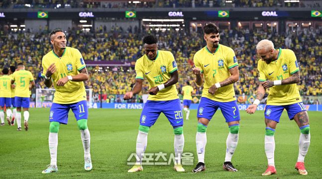 브라질은 지난 16강전에서 한국을 상대로 4-1 대승을 거뒀다. 전반전에만 4골을 뽑아내는 압도적 화력을 선보였다. 브라질은 득점할 때마다 현란한 댄스 세리머니로 흥을 분출했다. 심지어 치치 브라질 대표팀 감독까지 함께 춤을 췄다.