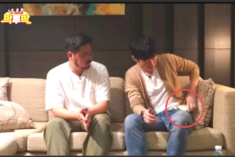 박지성(오른쪽) 해설위원이 호주머니에서 구글 스마트폰 ‘픽셀7’을 꺼내고 있다. [유튜브 슛포러브] |