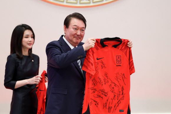 앞서 윤석열 대통령과 부인 김건희 여사는 축구 국가대표팀을 청와대 영빈관으로 초청해 진행했다.