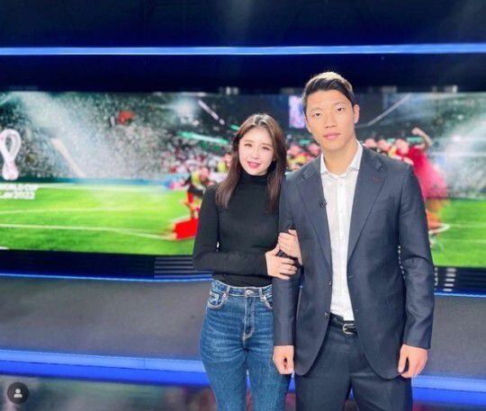 공개된 사진 속에는 최아리 캐스터와 황희찬 선수가 다정한 포즈를 취하고 있다.