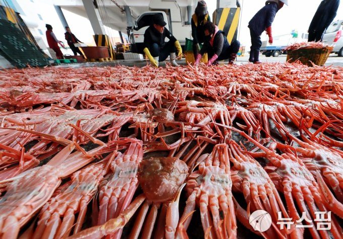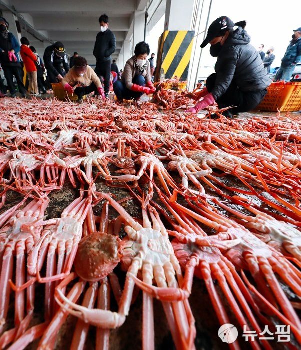 [울진=뉴스핌] 남효선 기자 = 대게 주산지인 경북 울진 죽변항의 대게 위판 모습. 2022.12.11 nulcheon@newspim.com |