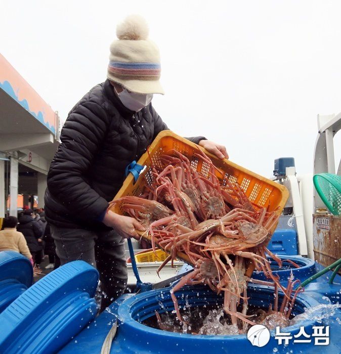 [울진=뉴스핌] 남효선 기자 = 죽변수협의 공개위판을 기다리는 울진의 명품 브랜드인 '울진대게' 2022.12.11 nulcheon@newspim.com |