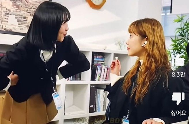 극중 주현영이 이어폰을 끼고 일을 하는 김아영에게 "업무 중에는 이어폰을 빼라"고 말하자 김아영은 "노래를 들으면서 일을 해야 능률이 오른다"고 대응한다. 주현영은 "그럼 한 쪽만 빼라"라며 타협점을 찾는다.