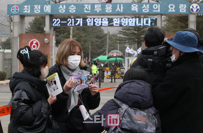 [이데일리 스타in 노진환 기자] 그룹 방탄소년단(BTS)의 맏형 진(본명 김석진)의 입대하는 13일 경기도 연천 육군 보병사단 열쇠 신병교육대 정문 앞에서 아미(ARMY)가 취재진과 인터뷰를 하고 있다.