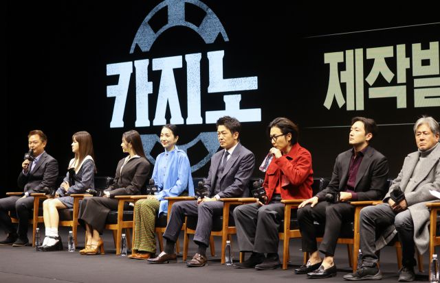 14일 오전 서울 종로구 JW 메리어트 동대문 스퀘어 서울 그랜드 볼룸에서 디즈니+ 오리지널 시리즈 ‘카지노’(극본/연출 강윤성) 제작발표회가 진행됐다. 배우 최민식, 손석구, 이동휘, 허성태, 김주령, 손은서, 류현경과 강윤성 감독이 참석해 작품에 대한 이야기를 나눴다.