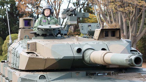 2021년 11월 27일 도쿄 육상자위대의 아사카주둔지를 방문해 10식 전차에 탑승한 기시다 후미오 일본 총리. AFP=연합뉴스 |