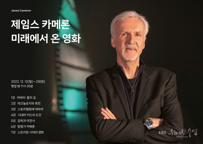 지난 12일(월)부터 〈아바타 시리즈〉는 물론, 영화 인생 전반에 걸쳐서 이야기를 들려주고 있는 제임스 카메론의 이야기는 오는 20일(화)까지 평일 밤 11시 35분 EBS 1TV 〈위대한 수업, 그레이트 마인즈〉에서 방송된다.