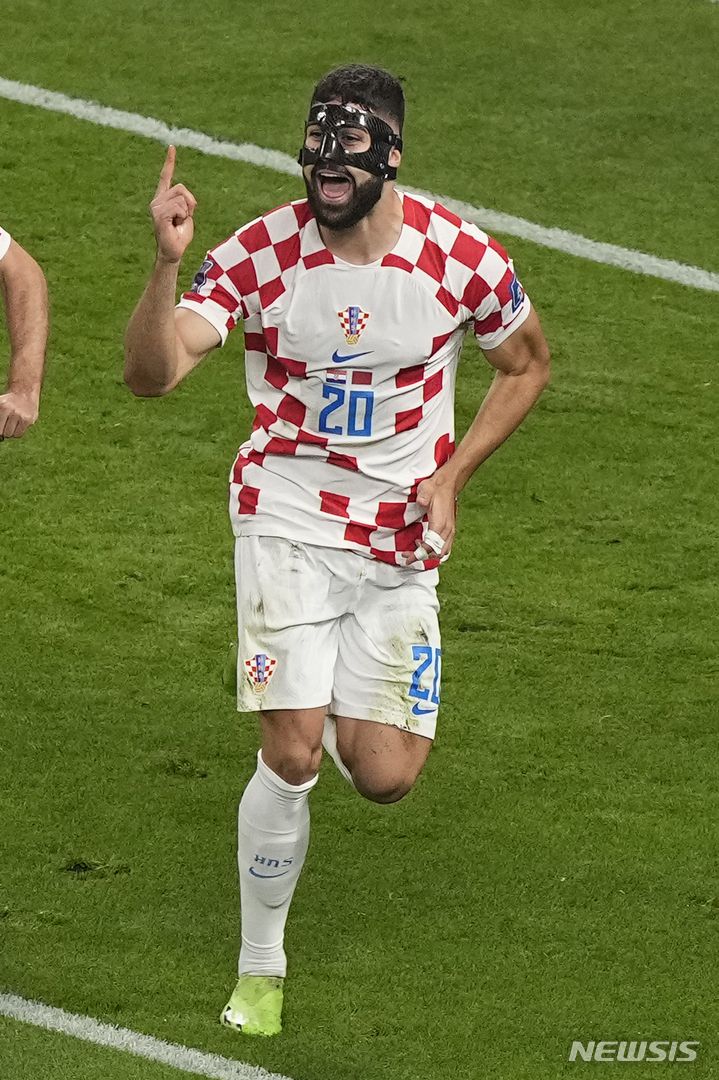 [도하(카타르)=AP/뉴시스]모로코와 3위 결정전에서 골 넣은 크로아티아 그바르디올. 2022.12.18. |