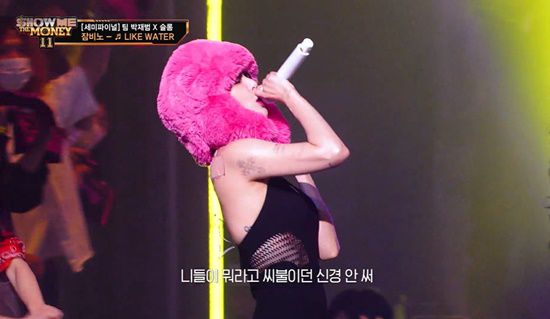 지난 23일 방송된 Mnet '쇼미더머니11'에서는 슬레이(박재범, 슬롬) 팀의 잠비노 세미 파이널 무대가 공개됐다.