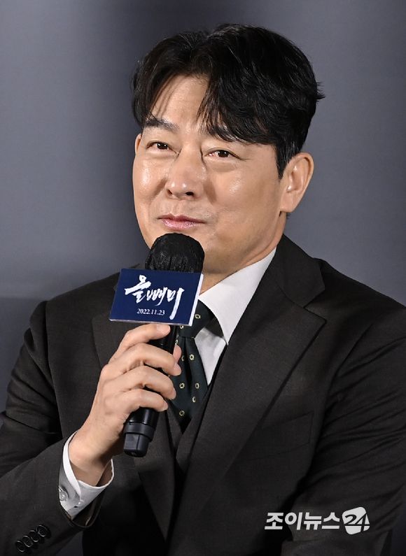 배우 조성하가 18일 서울 용산구 CGV 용산아이파크몰에서 열린 영화 '올빼미' 제작보고회에서 인사말을 하고 있다.