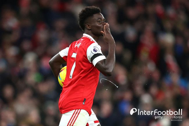 아스널이 균형을 맞췄다. 후반 8분 외데가르드가 시도한 중거리 슈팅이 문전에 있던 사카에게 전달됐다. 사카는 공을 잘 잡아놓은 뒤 침착한 슈팅으로 득점에 성공했다.
