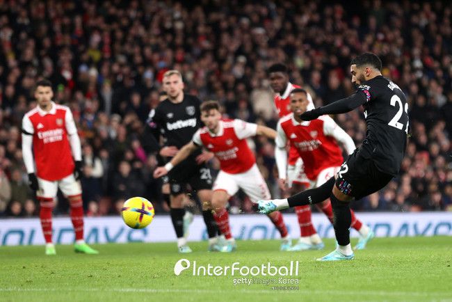오히려 웨스트햄이 선제골을 터뜨렸다. 전반 24분 보웬이 페널티킥(PK)을 만들어냈다. 키커로 벤라마가 나서 중앙으로 과감하게 처리하며 골망을 흔들었다.