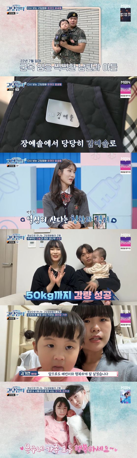 이날 '고딩엄빠' 최다 출연자 최민아는 "하랑이가 엄청 많이 컸다. 말도 많이 트이고 애들은 진짜 하루가 다르게 크는 것 같다. 남편은 7월에 입대를 했는데 한 달만 훈련소에 갔다 오고 상근으로 지내고 있다. 유튜브 채널을 만들어서 일상도 찍고 있다"며 가족 근황을 전했다.