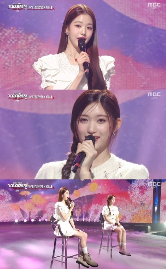 이날 아이브 장원영, 이서 '인형즈'는 아이유의 '스트로베리 문'을 컬래버했다. 장원영과 이서는 달콤한 보이스로 '스트로베리 문'의 동화 같은 이야기를 예쁘게 전달했다.