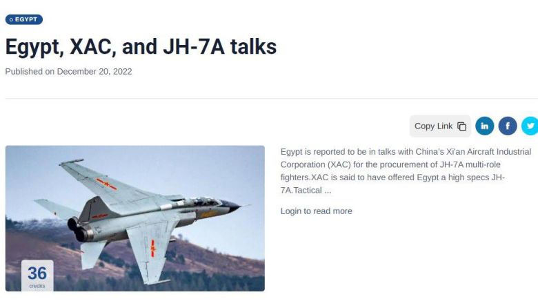 12월 하순 글로벌 방위산업 전문 매체인 ‘택티컬 리포트(Tactical Report)’에 눈길을 끄는 소식이 하나 올라왔습니다. 중국 국유기업인 시안항공공업이 중고 전폭기 젠훙(殲轟)-7(JH-7) 페이바오(飛豹) 200여대를 처분할 계획인데, 이집트와 매각 협상을 진행 중이라는 뉴스였어요.